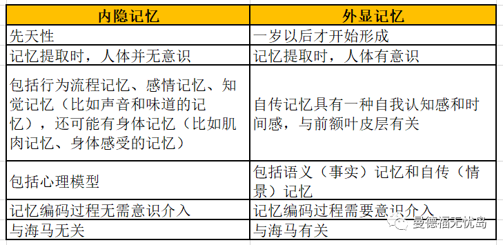 这样连接后,孩子的情绪就落地了。如果妈妈没有帮助孩子整合,小阳的恐惧情绪可能会遗留下来。比如,以后可能会害怕待在车里;或者跟爸爸单独待在一起就隐隐地担心;或者听不得“嘭”的碰撞声音等。每个孩子的表现可能会不一样。这个故事涉及到今天咱们学习的两种记忆方式:外显记忆和内隐记忆。