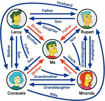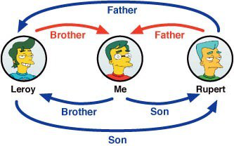 但是看看在你的普通人头脑中幕后发生了什么。从这两个事实中,你得到了四个额外的关系。(红色箭头表示明确教导的关系,蓝色箭头表示我们自己解决的问题。)