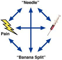 不幸的是,这种方法可能适得其反,因为“我知道”我在利用考虑香蕉圣代以避免针的想法。毕竟,我不是傻瓜,我也不会那么容易被愚弄(尤其是被我自己愚弄)。以后见到香蕉圣代可能会让我想起针头,而针头反过来又会引起痛苦。我把香蕉圣代带进了“针”的等同关系框架,现在这两个符号都与痛苦有关。如果我想别的办法来避免这种痛苦的话,我只是进一步扩大了关系网络。
