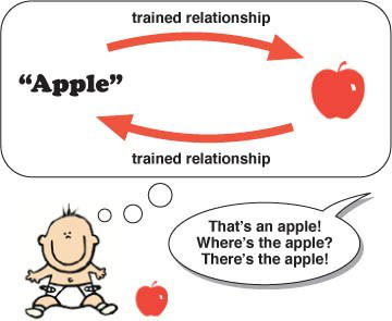 想想我们命名事物的例子。当我们教小孩子给事物命名时,通常遵循一定的方法。首先,我们将对象显示给孩子并命名。然后我们说出这个名字,让孩子指着这个物体。这将教会孩子在对象与名称之间建立双向关系。