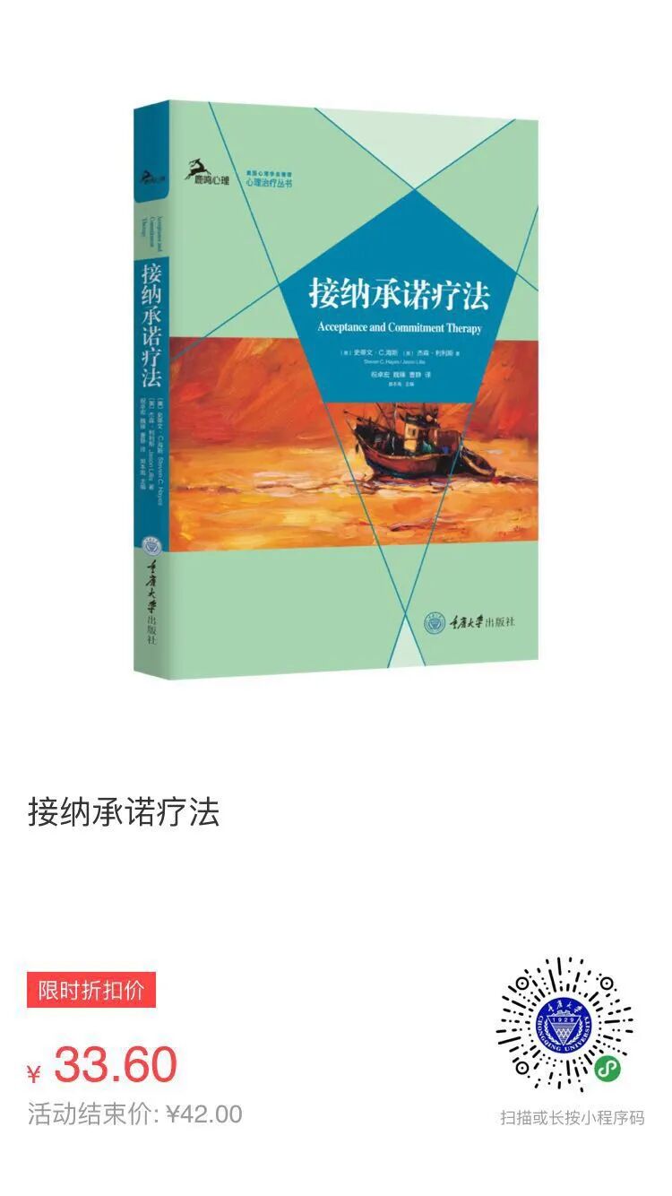 本书是美国心理学会(APA)组织编写的24本经典“心理治疗丛书”之一,这套丛书选择了24种当今****、最有影响、最具时代精神的循证治疗方法,而ACT作为其中之一,说明ACT作为认知行为治疗第三浪潮代表疗法已经进入主流治疗方法而且其影响力越来越大。本书应该说是ACT创始人海斯教授亲自撰写的一本经典的ACT教材,对于中国广大精神科医生、心理咨询师、心理治疗师和临床心理学专业的学生来讲是了解ACT的入门佳作。本书系统而又简明扼要地介绍了ACT的产生背景、发展历史、基本理论、治疗过程、评估方法及未来展望,里面还有不少治疗案例的治疗对话,比较生动地展现了ACT治疗过程及具体技术。当下,新冠肺炎疫情给人类来带来了巨大公共卫生灾难,在抗击疫情的过程中,既要救护患者生命,做好疫情防护,还需要提高人们应对压力的能力,维护身心健康。世界卫生组织在2020年推出应对疫情压力的科普书籍时,选择了由海斯教授的学生哈里斯所撰写的《在压力之际,做重要之事》(Doing what matters in times of stress),说明ACT已经被世界卫生组织认可并推广到全球范围。面对疫情压力,ACT可以提高人们的心理灵活性,帮助人们接纳各种焦虑、恐惧、抑郁的情绪反应,缓解不必要的痛苦,帮助人们澄清生活的价值方向,采取承诺行动,做重要的事情,从而让人们的生活更加丰富、充实而有意义。在这次抗击疫情期间,我也为武汉市教育局300多名心理老师做了ACT初级和中级培训,对上海理工大学组织的上海市50多所高校心理老师做了ACT培训,还对华东师范大学附属精神卫生中心的20多位精神科医生做了ACT初级培训,受训者一致反馈ACT非常好。本书历经诸多波折,终于面世,也是恰逢其时。我相信本书会对我国广大精神卫生和心理健康工作者学习ACT提供很好的帮助。