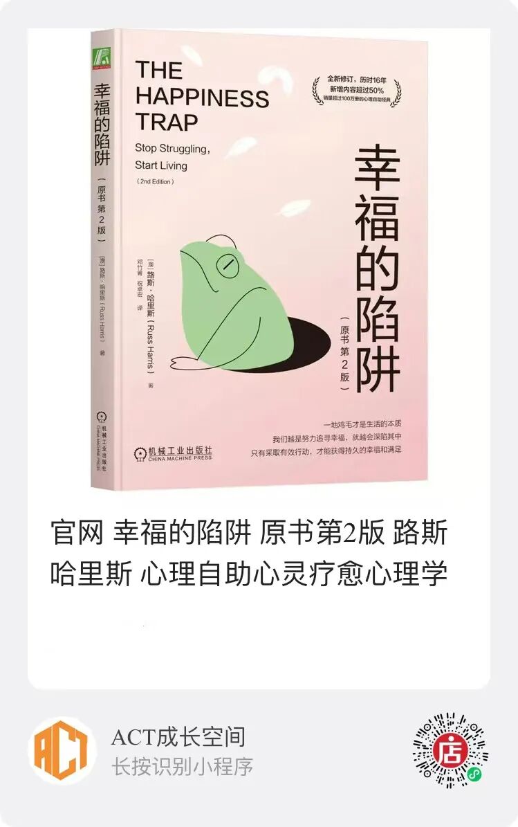 推荐语:压力、焦虑、沮丧、低自尊在现代社会无处不在,尽管我们的生活水准达到了一个良好水平,人们还是如困兽般挣扎着。本书为我们提供了以ACT为基础的开创性方法,教你从根源上转变应对痛苦想法、情绪的方式,以一种全新的模式去体验痛苦的想法和情绪,从而削弱它们的力量,大大减轻它们给你的生活造成的不利影响。