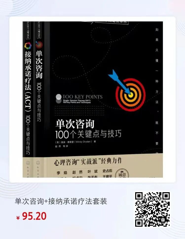 这次,100个关键点系列上新两本书:《接纳承诺疗法(ACT)》和《单次咨询(SST)》,都是首次翻译引进中文版的参考书目。