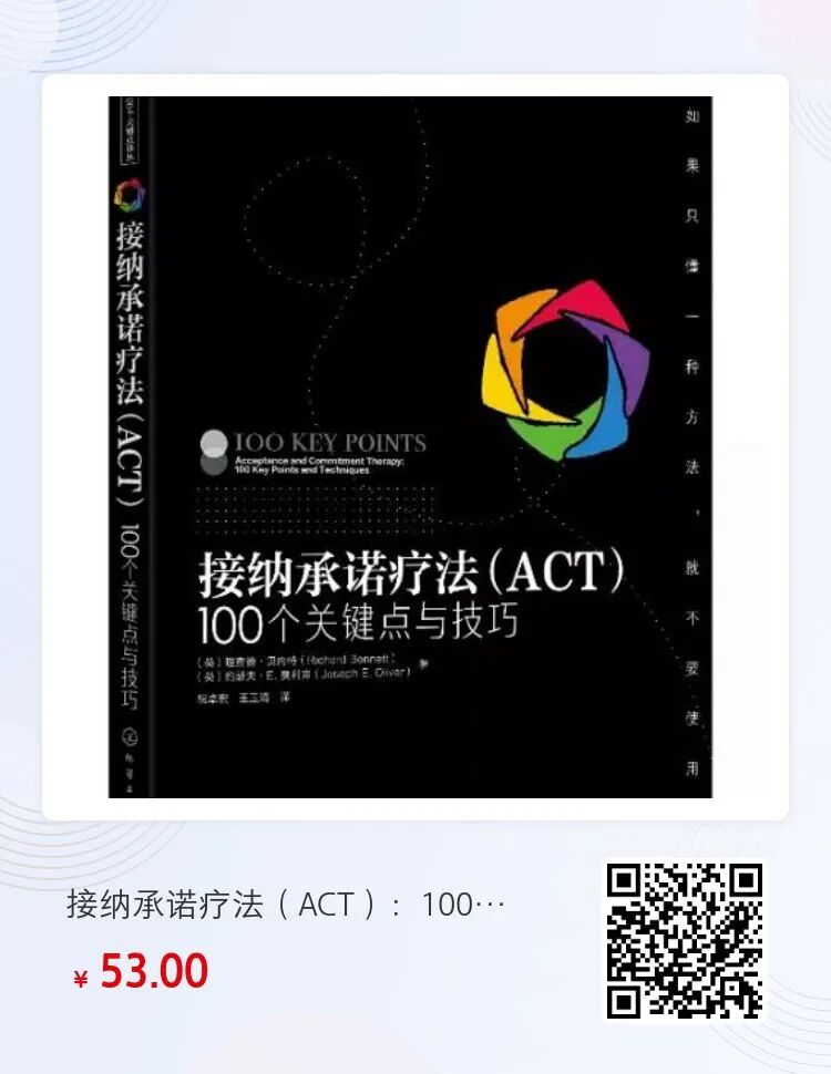 本次要给大家推荐一本ACT新书:《接纳承诺疗法(ACT)100个关键点与技巧》